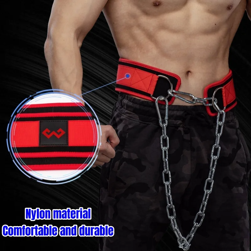 Fabricado com materiais premium, o cinto possui design contornado com suporte traseiro suave, garantindo conforto durante o uso. Sua corrente de aço pesado de 80cm, acompanhada de mosquetão resistente, permite adicionar pesos com total estabilidade e confiança.
