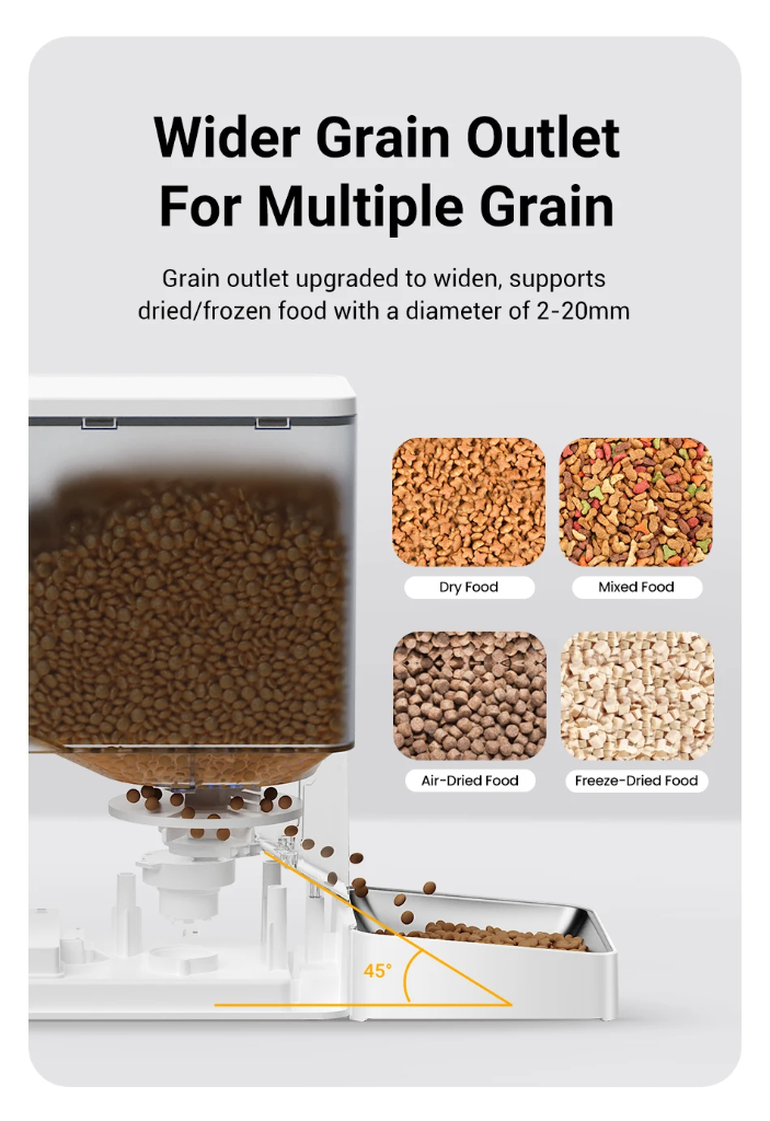 Tipo de Ração Compatível: Secos ou congelados (2 a 20 mm)