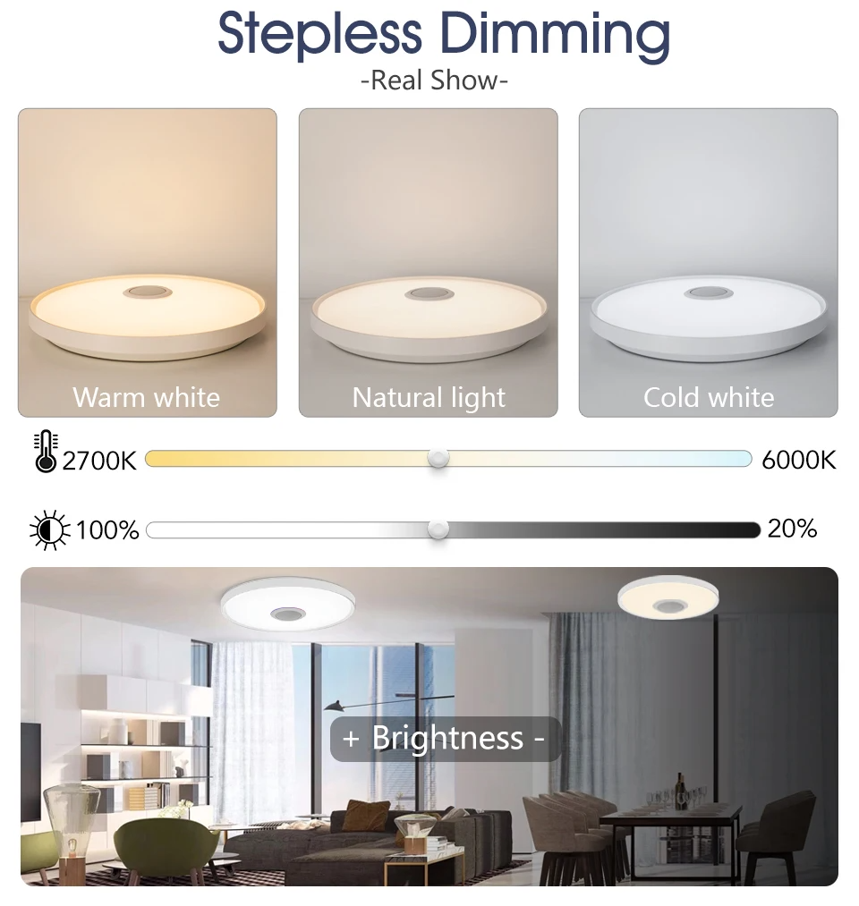 O produto conta com 3 variações de tamanho (30cm, 37cm e 46cm), permitindo a adaptação perfeita para diferentes espaços. Possui regulagem de brilho e ajuste de temperatura de cor, possibilitando criar desde ambientes mais aconchegantes até espaços claros e funcionais.
